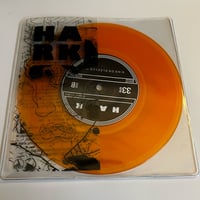 "Ex. Taint frontman Jimbob Isaac returns with his new unit Hark. Their debut seven inch 'Mythopoeia' is released on July 30th, through the Destructure/SuperFi labels. The Welsh progressive-power-sludge trio carry Taint's torch forward, passed on from their legacy that began in 1994. With fresh chops and almighty riff power, Hark continue to fuse punk attack with Sabbathian dirge, and decorate post-whatever angularities with classic rock flourish. While Isaac's vocals expand on his tried and tested palette, his lyrics continue to shatter prose with bleak metaphor and acerbic spittle. Former Whyteleaf rhythm section Nikolai Ribnikov and Simon Bonwick, the Hark engine, bring an OCD approach to song craft, and endlessly creative pummel. Their dynamic chops, and blood lust for riffs meld with Isaac's honed and equally determined musical vision. This is the repress, on orange vinyl with an acetate sleeve."
